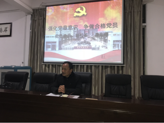在党课一开始,聂校长就指出:十九大对党章做了重大修订,每个党员都应该逐条主句地通读新党章,全面理解党的纲领,牢记党的宗旨,坚定理想信念,对党绝对忠诚。
